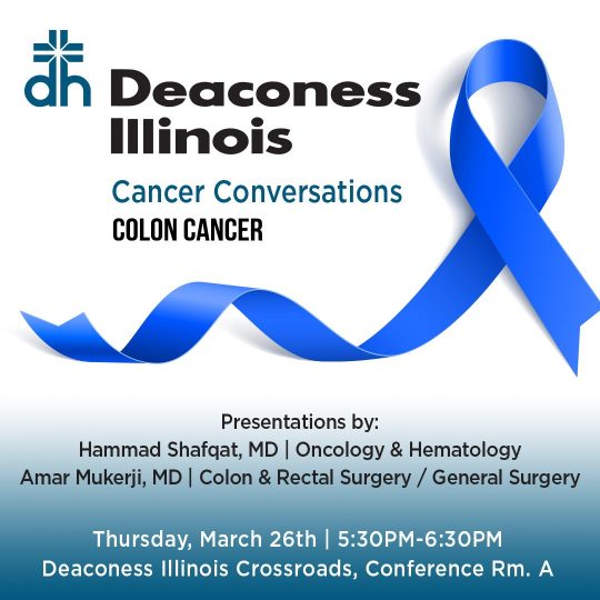 Colon Cancer Seminar on Thursday, March 26, from 5:30 p.m. to 6:30 p.m. at Deaconess Illinois