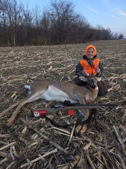 Meyer kabat, 7 years old. Second deer ever killed, shot by grandma's house. Also got a doe from the same spot that evening!