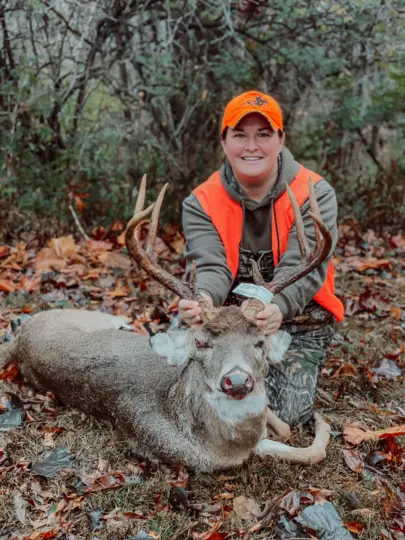 This was my first ever hunt. Learned how to shoot crossbow about 3 weeks ago. I could see some and hear some rattling to the left over my shoulder on a hill. So I told my boyfriend and he started calling it in. The buck never came closer to the stand, but he told me if I got a clean shot just shoot. Finally got the buck to stop and I shot him at 51 yards out. I was shaking(I told my boyfriend it was because I was cold). I’m hooked