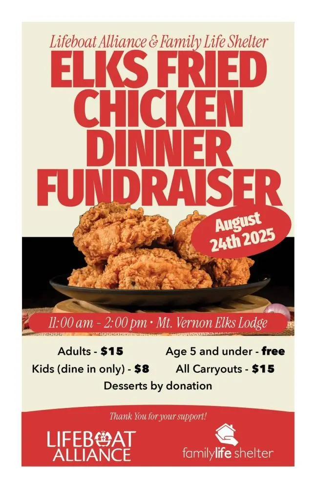 Elks Chicken Dinner Fundraiser – Lifeboat Alliance & Family Life Shelter